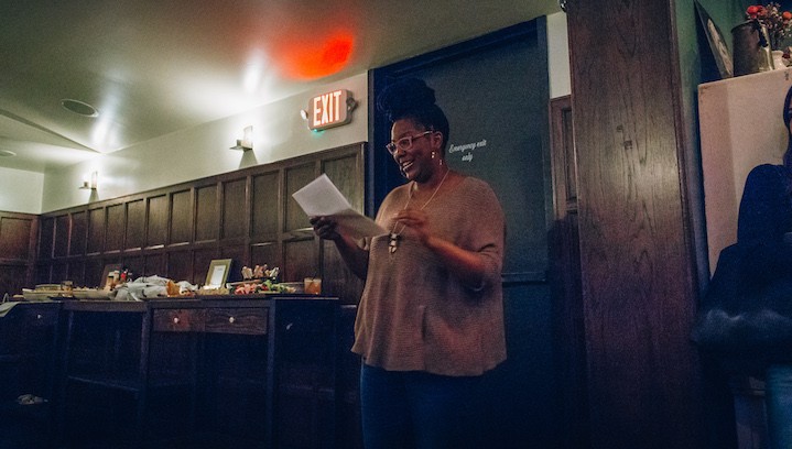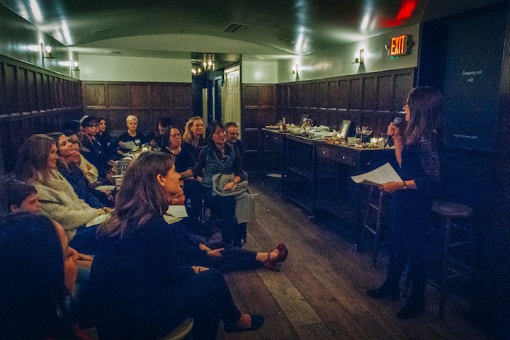 Whee — our seventh TueNight Live event, people! This thing is becoming real, real. Once again we brought our issue to life, this time with the theme, “Sisters,” honoring both our biological sibs as well as the many women with whom we feel so close. We gathered at The Wren Downstairs, a lovely, cozy room below a charming restaurant on Bowery and Great Jones Streets in Manhattan.